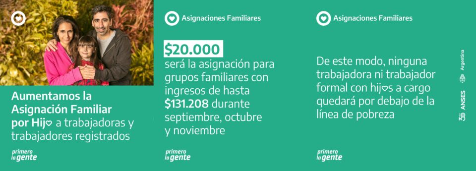Durante septiembre, octubre y noviembre la Asignación Familiar pasará a $20.000 para trabajadoras y trabajadores registrados con ingresos familiares de hasta $131.208.