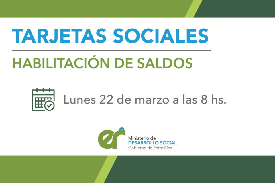 El gobierno de Entre Ríos, a través del Ministerio de Desarrollo Social, informó que el 22 de marzo se acreditarán los saldos de la tarjeta social.