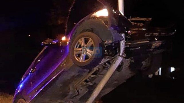En la foto se da cuenta del impacto del vehículo, que quedó incrustado en el poste.