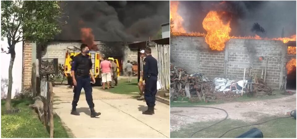 El incendio se produjo este jueves en un depósito con garrafas ubicado en el barrio Feria, el fuego está controlado», anticipó el jefe departamental de policía Crio. Edgardo Corona en declaraciones a FM Río.