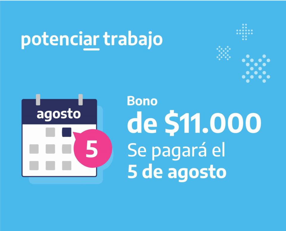 El viernes 5 de agosto, las y los titulares del programa #PotenciarTrabajo van a recibir el depósito extra por un pago adicional de $11.000.
