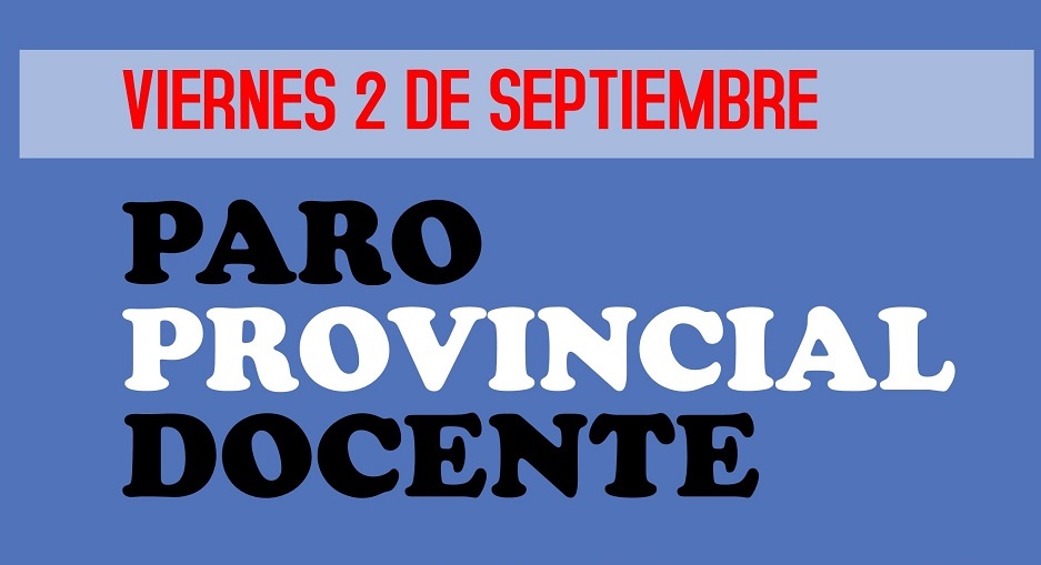 La Comisiones Directivas de AGMER, AMET, UDA y SADOP comunican que en función de las resoluciones tomadas por los diferentes estamentos estatutarios de cada uno de los sindicatos antes mencionados se convoca a un paro de 24 horas para el día de mañana viernes 2 de septiembre del corriente año.